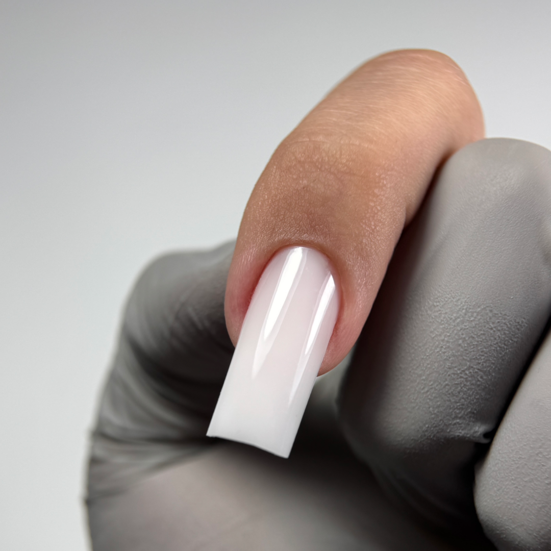 - При укрепване, не забравяйте да изпилите естествения нокът отдолу