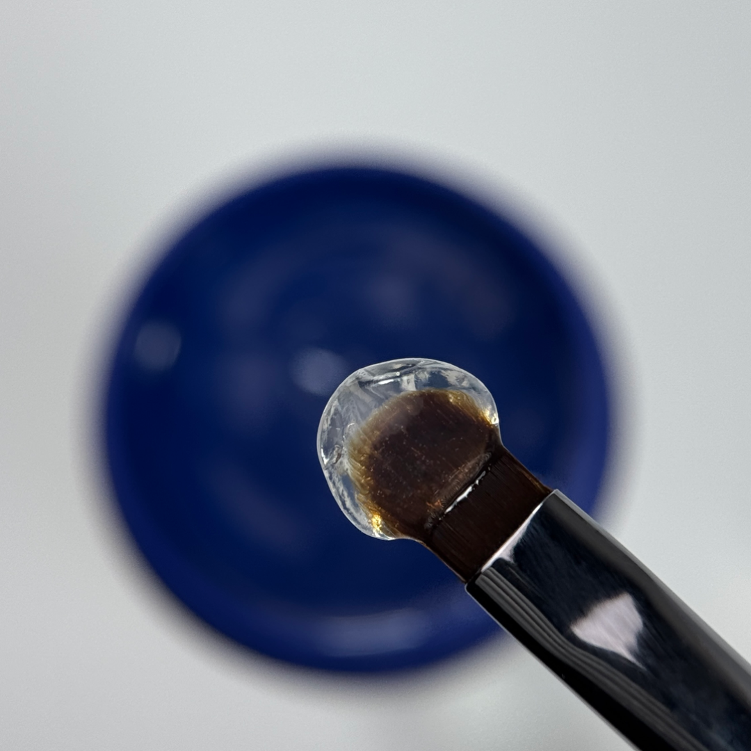 - Нанесете еластична прозрачна основа с тънък или триещ слой